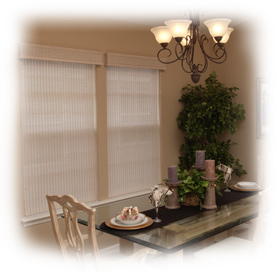 Our extensive selection of traditional shades includes uniquely textured woven wood shades, elegant Roman shades, crisp pleated shades and traditional roller shades. Choose from a variety of textures, fabrics, colors and styles. Some of the manufactures that we care in our shades are: Hunter Douglas, Kathy Ireland, Skandia, and Century (just to name a few!)